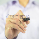 Young Man, Businessman, entrepreneur, creative designer, freelancer writes and draws on transparent wall : Coaching