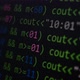Source code on the monitor screen. Shooting of the text of the computer program.