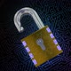Code lock. Cybersecurity of digital data and protection against hacker attacks and hacking of computer data transmission networks. Binary code, high speed connection data analysis