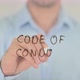 Code Of Conduct, Man Writing on Transparent Glass Screen