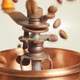 Coffee beans falling into vintage grinder in slow motion