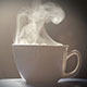 Cup of hot coffee or tea with steam.