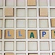 COLLAPSE. Hand of a caucasian person slowly creating the word collapse with the use of small wooden puzzles with colourful letters on them. High quality 4k footage