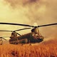 Combat cargo helicopter taking off