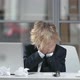 Little office worker found a mistake in his business project and covering face with hands in front of the laptop