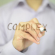 Man, Businessman, entrepreneur, stock trader, analyst or banker writes on transparent wall : Complex