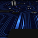 Computer circuits on board in action showing electric impulses. concepts covering: - IT - Speed - Data - Internet - Computing - Computer