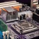 Circuit board background of PC computer motherboard. Computer circuit board close up, electronic technology background