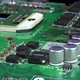 Circuit board background of PC computer motherboard. Computer circuit board close up, electronic technology background
