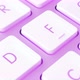 Close up with PAN of digitally generated animation of purple computer keyboard