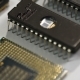 computer processor and electronic components on white background. macro