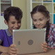 Four kids having fun with digital tablet