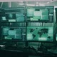Pan around view of modern computer monitor with world map and various data located on desk in dark room of hacker base Full HD version