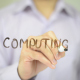 Man, Businessman, entrepreneur, freelancer, software engineer, programmer writes on transparent wall : Computing