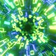 Fly through technology cyberspace with neon glow. Sci-fi flight through hi-tech technology tunnel. Hologram and neon light. 3d looped seamless 4k bright background. Data flow. Shallow depth of field