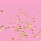 Digital animation of gold confetti falling against a pink background