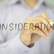 Man, Businessman, entrepreneur, stock trader, analyst or banker writes on transparent wall : Consideration