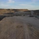Working view of the engine grader carrying the stacked soils, view of the work in the mining area from the air, heavy construction vehicles and earth construction site