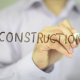 Man, Businessman, entrepreneur, stock trader, anrchitect enginner, builder writes on transparent wall : Construction