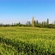 Landscape of low flight over cornfield