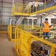 corn cobs are moving on automated conveyor belts. Employee, with tablet in his hands, controls quality of process and raw materials. Agribusiness. Corn processing factory. Agriculture.