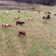 Aerial view of cows on mountain meadow