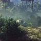 Wrecked plane lies in the jungle in the middle of palm trees and tropical vegetation