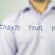Man writes on transparent screen ” Create Your Future “