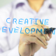 Young Man, creative designer, freelancer writes and draws on transparent wall : Creative Development