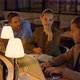 Creative business people using laptop computers for work in office. Young colleagues discussing project with boss indoors. Business team working in evening in coworking