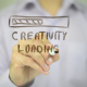 Man, Businessman, entrepreneur, stock trader, analyst or banker writes on transparent wall : Creativity Loading