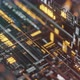 Data stream futuristic virtual computer network blockchain security, virtual CPU processor on cryptography concept. 4K loop, 3D rendering