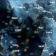 A rotating sphere of crypto coin logos and polygonal wireframe structures in selective focus around digital globe.