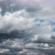 Time lapse sunbeams break through grey cumulus clouds in sky. Cumulus cloud cloudscape timelapse. Weather change from stormy clouds to white fluffy clouds in clear blue sky. Skyscape background