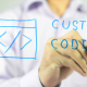 Young Man, creative designer, freelancer writes and draws on transparent wall : Custom Coding, Illustration