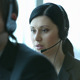 Two hot-line operators with headset consulting clients. Group of call center workers talking to customers, the focus is on a handsome friendly man, than on a young brunette woman sitting behind him, again on the man and then on the woman, copy-space provided at the end. All the workers wearing elegant black suits. You can use this footage to illustrate such topics as helpline, helpdesk, switchboard operators, customer service representatives, IT support, etc.