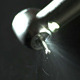Dental drill in action against dark gray background