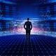 Data Graph Virtual Reality It showing a virtual environment of a city surrounded by data and animated graph overlaying the city sky as data cloud