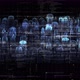 Futuristic simulation of 5G network concept, artificial intelligence quantum physic matrix particles deep learning performing analytic computational head up display loop background