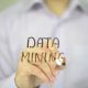 Man, Businessman, entrepreneur, freelancer, software engineer, programmer writes on transparent wall : Data Mining