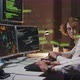 Mature Caucasian man and young woman staying late at work in office working on hacker attack prevention