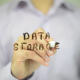 Man, Businessman, entrepreneur, freelancer, software engineer, programmer writes on transparent wall : Data Storage