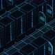 Files Are Transferring From Server Racks In A Datacenter. Data transmission technology. Blue glowing servers with graphic representation of files connecting with each other over the dark background.