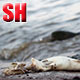 This download contains a 1 video footage of dead fish on the shore. You can see dead lake fish lying on the shore. Her head is damaged by birds or parasites. Dirty and polluted sea or lake water in the background is waving.
