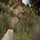 “Indian paintbrush wildflower in bloom with fresh grasses on a rocky hillside in Zion National Park in springtime.”