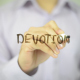 Man, Businessman, entrepreneur, stock trader, analyst or banker writes on transparent wall : Devotion