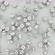 Dozens of dice all fall at once and scatter on a rotating hard surface with a grid pattern.