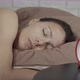 Difficulty with sleeping. A woman with dufficulty sleeping lay with open eyes during night time.