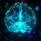 Computer generated model of artificial intelligence. 3d rendering of the digital brain against the backdrop of colored blurred particles