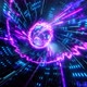 An endless flight through a futuristic tunnel with neon digital lights and HUDs in a seamless loop.